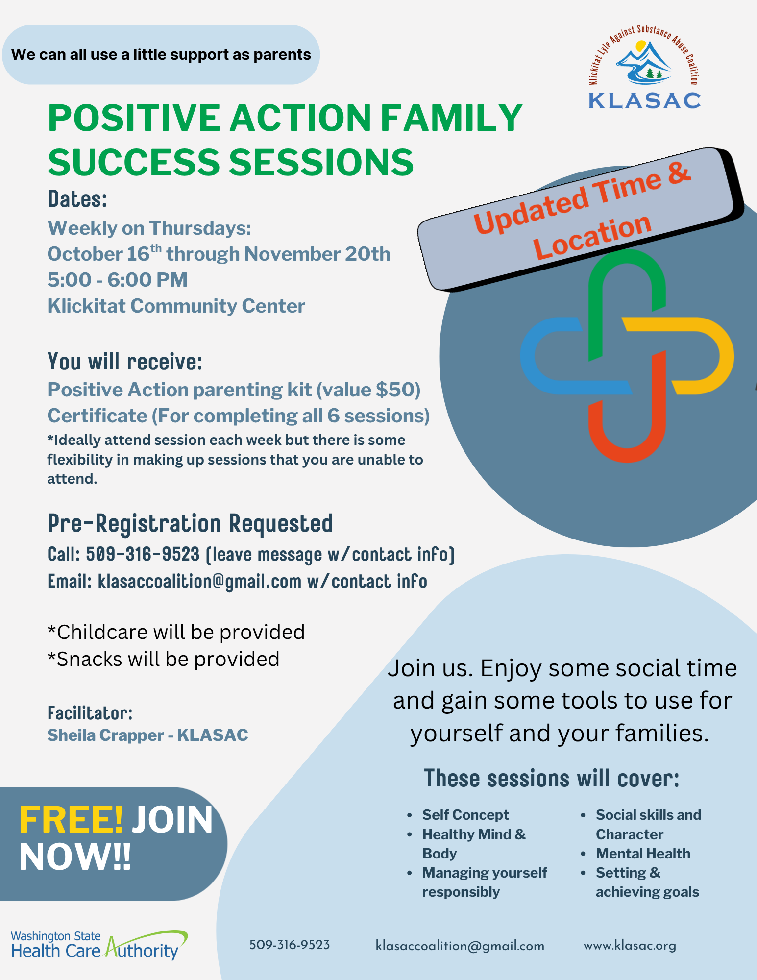 Our meetings are open to the community and are held the third Wednesday of every month from 5pm to 6:00 pm. At this time, we will have hybrid meeting options. You may join us in person, alternating locations between the Klickitat Community Center and the Lyle Activity Center or join us on Zoom. If you would like to join in, please email us at klasaccoalition@gmail.com to be added to mailing list and receive meeting links.